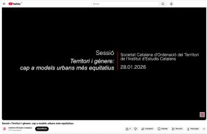 Ja podeu veure íntegrament al canal de YouTube de l’IEC la sessió “Territori i gènere: cap a models urbans més equitatius”, celebrada el passat 28 de gener de 2026 a l’Institut d’Estudis Catalans.